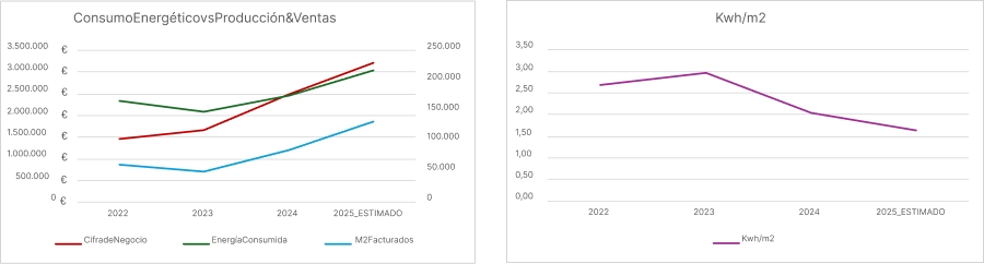 La sostenibilidad también es eficiencia: monitorizamos consumos y trabajamos para producir más con menos energía por metro cuadrado.